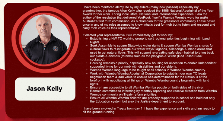 This role as a reserved seat holder for the Wamba Wemba Aboriginal Corporation needs strong leadership and understanding to maintain the integrity and trust for Our community to thrive in the Treaty space in preparation and discussion. I have the skills and knowledge to engage All Wamba Wamba Nation peoples to create, capture and report the necessary feedback directly from the community. I have strong skills in understanding current Victorian legislation regarding Treaty and have a culturally strong network of Aboriginal peoples in the State to ensure that all Wamba Wemba Nation needs and sovereignty are protected and well supported in the Treaty process.